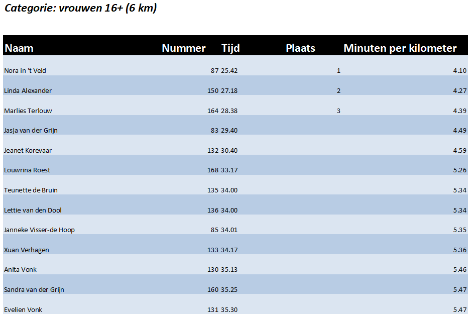 Officiële afstanden: 6.10 km en 12.15 km