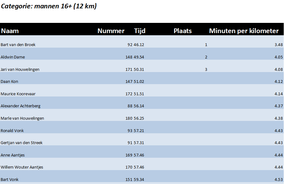 Categorie mannen 16+